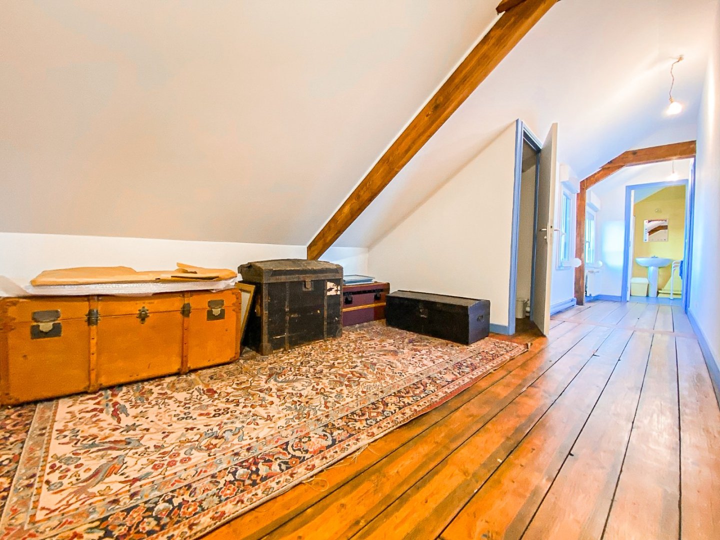 Les deux étages proposent sept chambres au total : quatre chambres confortables au premier niveau (14,5 à 16,9 m²) et trois belles chambres au deuxième étage (12,1 à 21 m²), permettant de disposer d'espaces privés pour chacun ou de réserver des pièces pour un bureau, une salle de jeux ou des chambres d'hôtes. Une salle de bains spacieuse (11,7 m²) et une salle d'eau supplémentaire complètent l'offre, ainsi que des paliers généreux qui donnent une réelle impression d'espace.